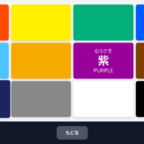 もう一度画面を押すと,平仮名/漢字/英語でその色を示す文字が表示されます。もう一度画面を押すと文字が消えます。色の画面の左上「Back」を押すと,12色を選択する画面に戻ります。