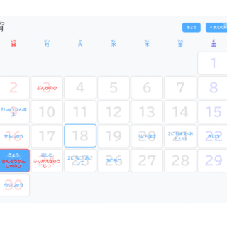 相対的な日付の読み方を学ぶカレンダーです。選択した日から見て,がいつに当たるのかを表記できます。カレンダーは実際のものを使用しており,デフォルトはリアルタイムの月を示します。画面の右上には,月の切替ボタンや,今日にジャンプするボタンがありま...