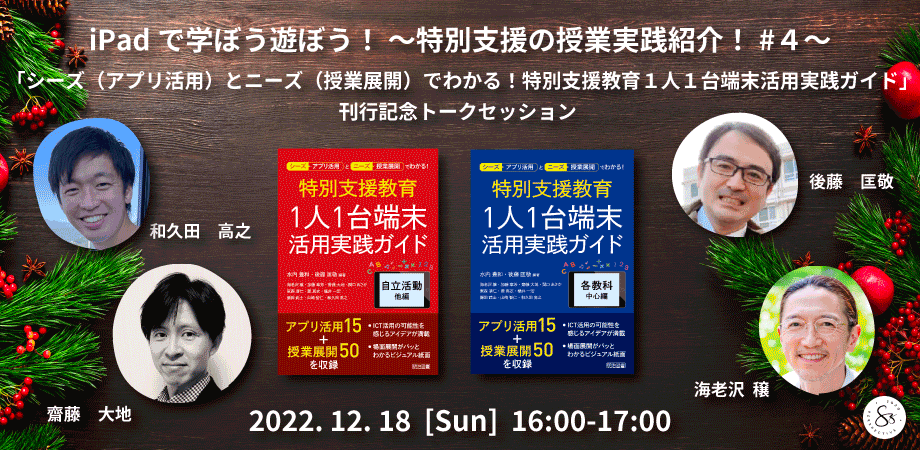 明治図書から発売されています「特別支援教育1人1台端末活用実践ガイド」。その刊行記念イベントとして月に1回実施してきた本イベントのVol.4が12月に開催されます。本シリーズ最終回である今回は私も登壇します。
